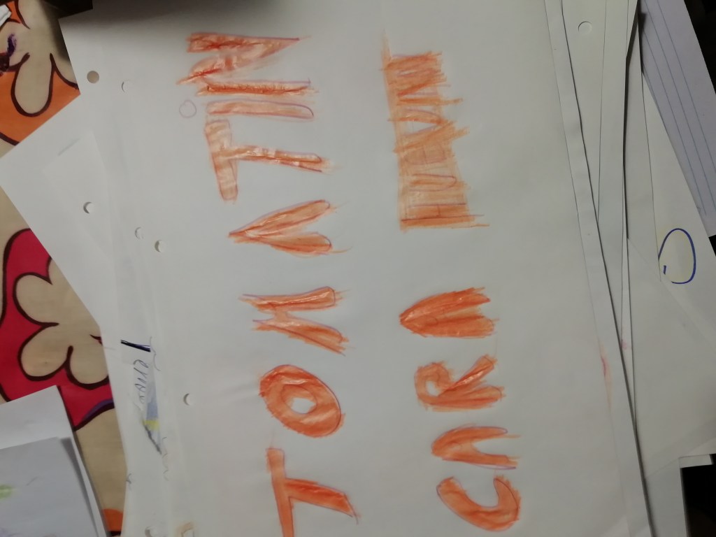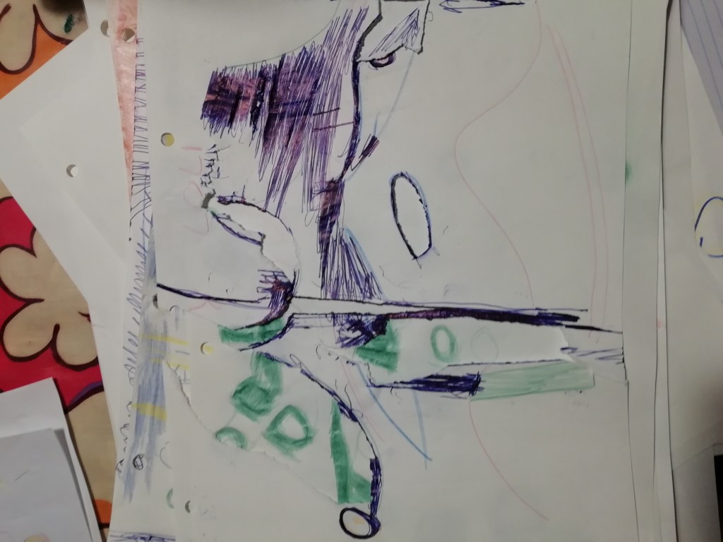 Al estar a diario tantas horas con Tomás, y para yo poder descansar (ya que es agotador estar pendiente de él tantas horas seguidas), pensé en alguna otra tarea en la que estuviera ocupado sin tener que estar yo con él mientras la realiza. Eso fueron los dibujos que yo hacía para que él pintara despúes. A veces, le dejaba tranquilo y rellenando bien con sus lapiceros. En otras ocasiones se mantenía nervioso, aunque era igual de eficaz para poder descansar. La diferencia era que, cuando estaba algo inquieto, no los rellenaba de la misma forma que cuando estaba relajado, sino que los pintaba por fuera de ellos, saliéndose todo el rato. Lo importante es que lo hacía sin tener que indicarle yo nada, solo al empezar a pintar en algunas ocasiones.